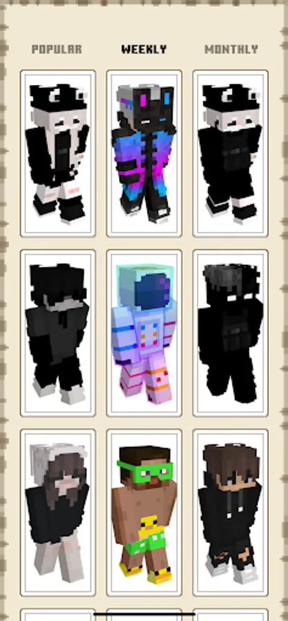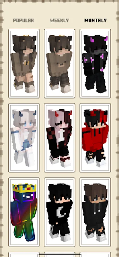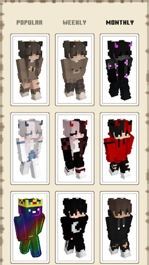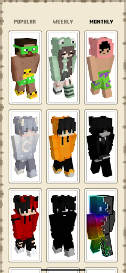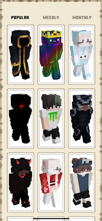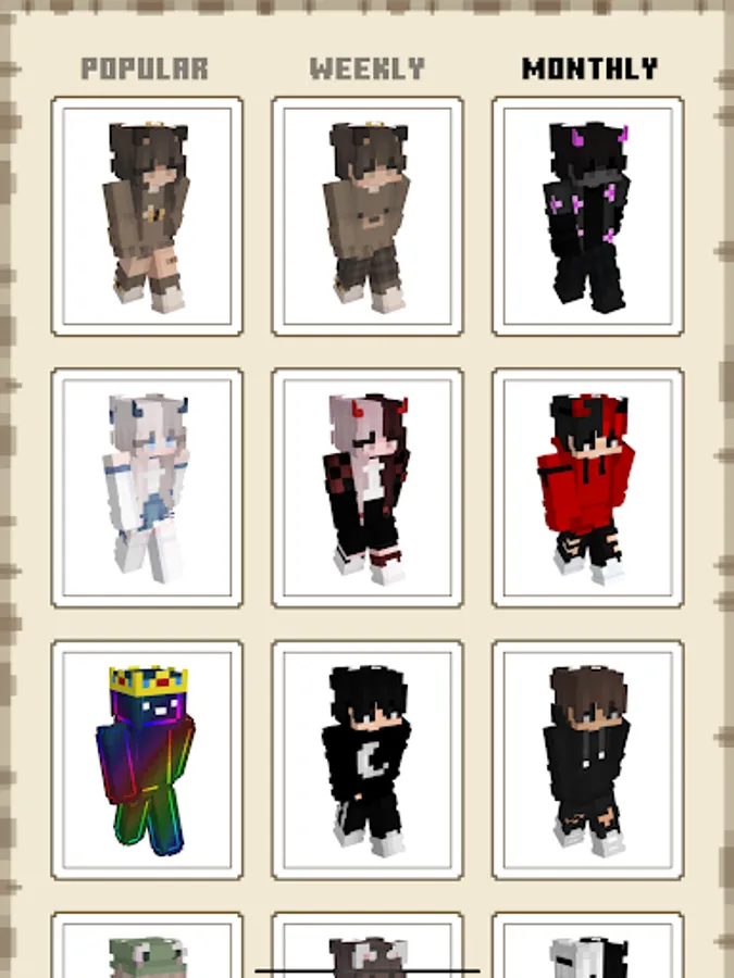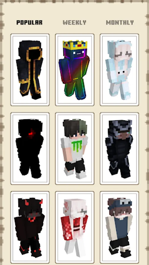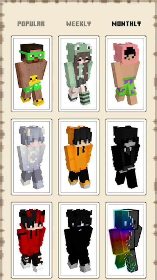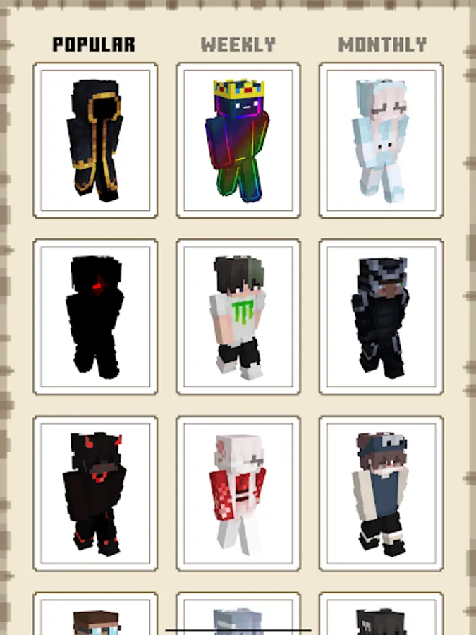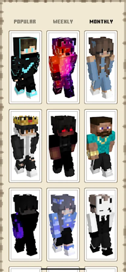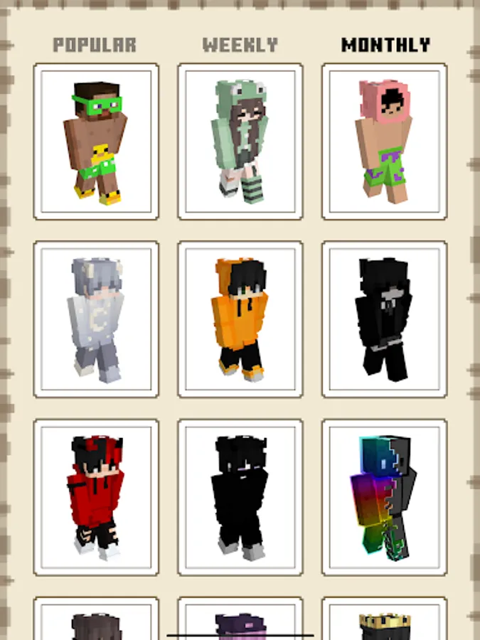 With our Minecraft skins app, so you can easily find skins based on specific themes or characters.