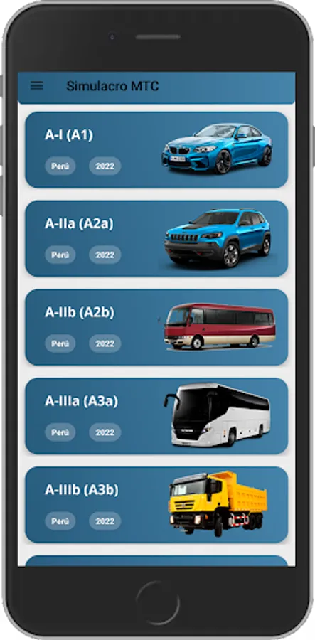 In this app you will find the driver's license theoretical exam simulation, in the MTC 2023 Peru Simulation there are all the updated ballots of the categories you want, in the MTC knowledge simulation you will find updated questions to study traffic rules, driving signs .