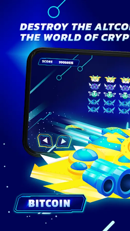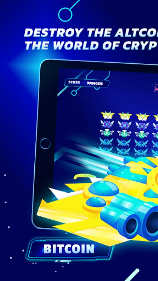 Coins Invaders is a video game of an apocalyptic world where different cryptocurrencies face each other. Lead the Bitcoin ship to its final victory against altocoins: the other cryptocurrencies that are manipulated by the dark forces of the markets and central banks to steal your money. Protect the Bitcoin ship with the gold shields, avoid the shots and destroy the enemy ships so that humans survive the rain of trillions of paper money bills, issued by central banks, which are losing value.