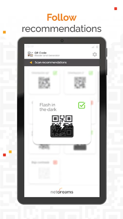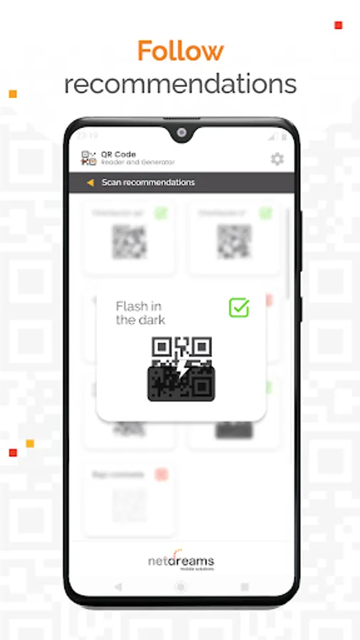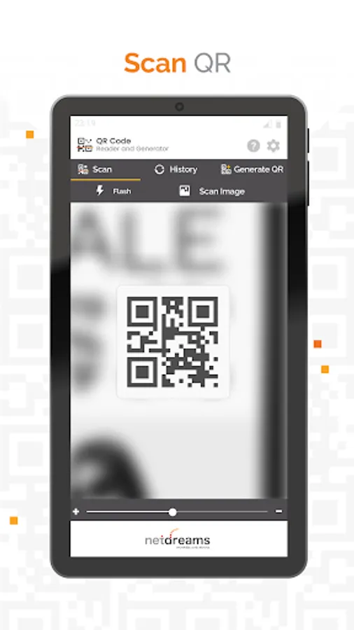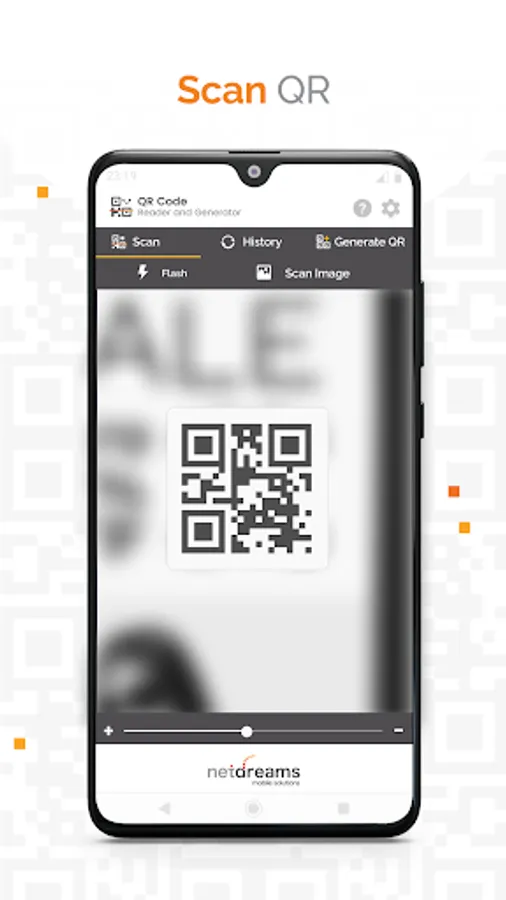 Activate the flashlight from the app to scan in dark places, and use the zoom to read QR and barcodes from afar.