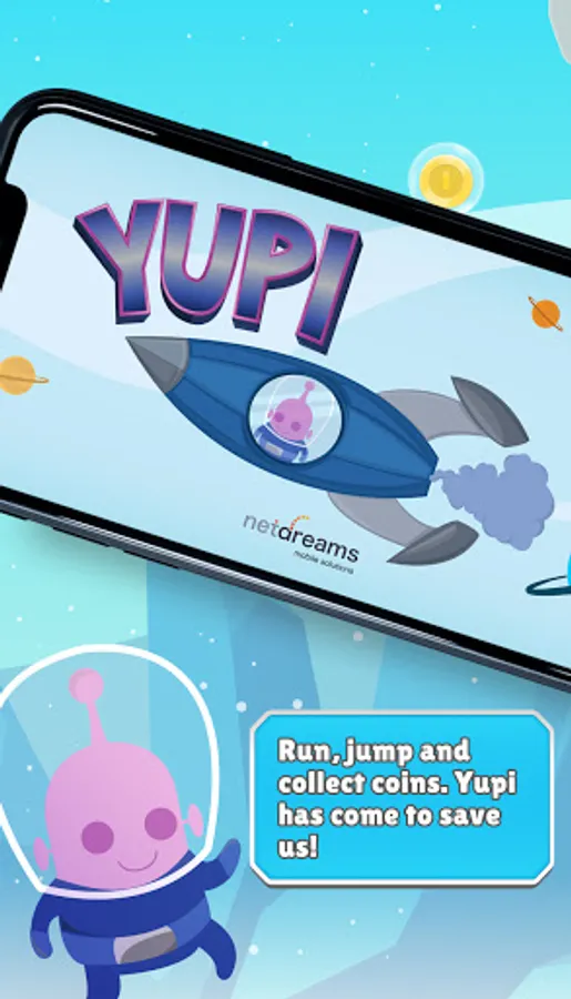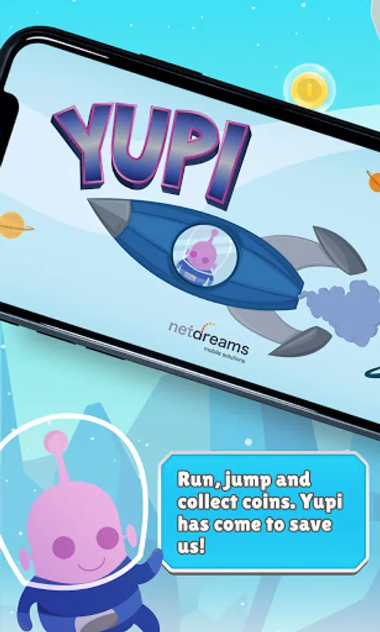 Scientists on earth managed to experiment with sterile neutrinos so that they can contain dark matter and be able to learn more about the universe. An explosion in the laboratory endangered the Milky Way. From planet K2-18b came an alien life form willing to help humans. He identified himself as Yupi and his objective is to protect the earthlings from the dangerous bombyx, beings from a distant galaxy who were attracted by the energy of the explosion, for which he must take as many gold coins as possible, avoiding falling into the void. timeless and warding off meteorites and dangerous bombyx