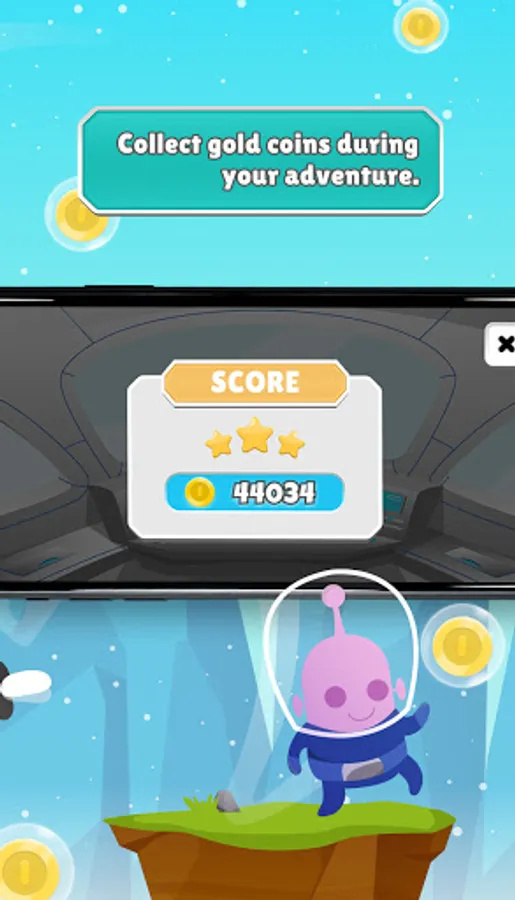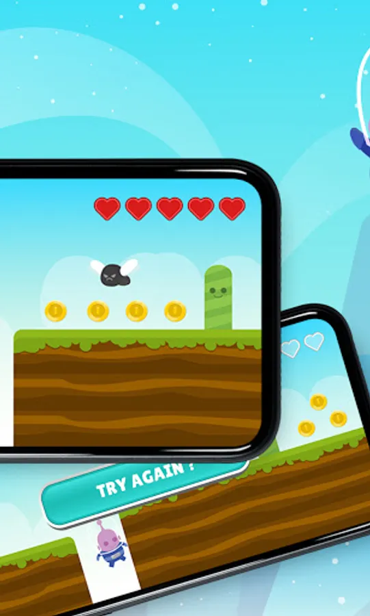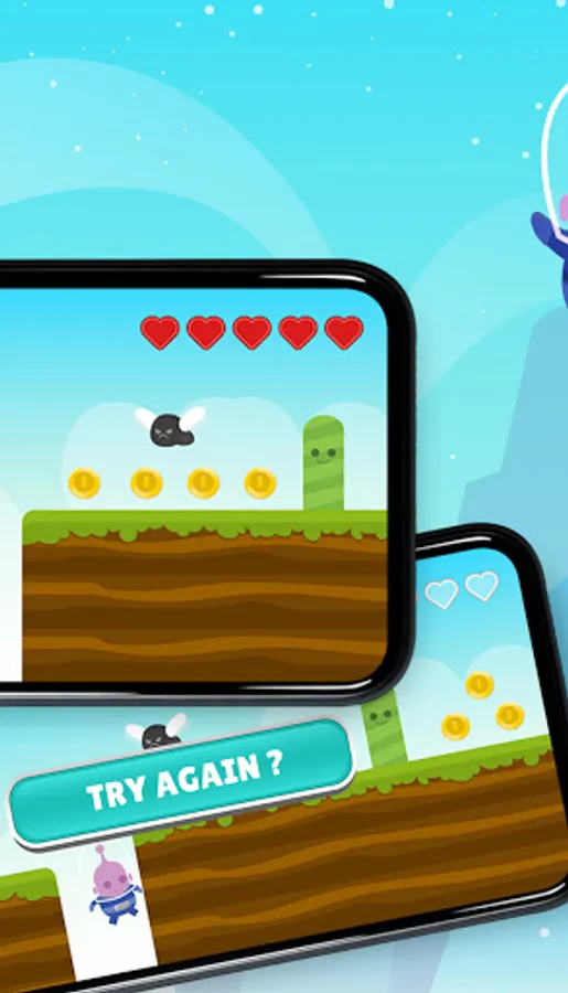 Hearts indicate the number of lives you have left. You have to take care of your lives so that you can keep collecting coins. Yupi is in charge of collecting gold coins to help humans. The more you collect, the more points you earn!