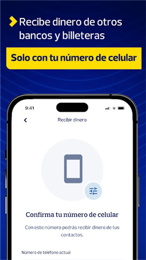 • Receive money from other digital wallets and financial entities only with your cell phone number.