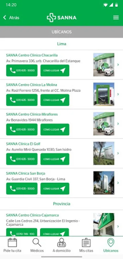 Lima: SANNA Clínica El Golf, SANNA San Borja Clinic, Clinics: La Molina and Chacarilla.