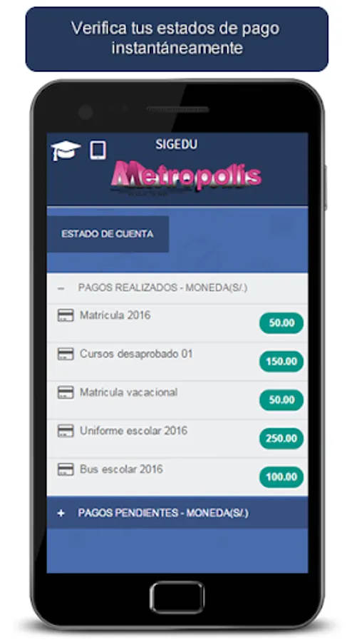 SIGEDU, is an E-learning platform of Web and Mobile type for the I.E., that allows us to create virtual courses, share resources, processes and educational experiences in a timely and simple way. It also allows access to qualifications, generate records, attendance control, SMS notifications, pension payments and academic reports ONLINE