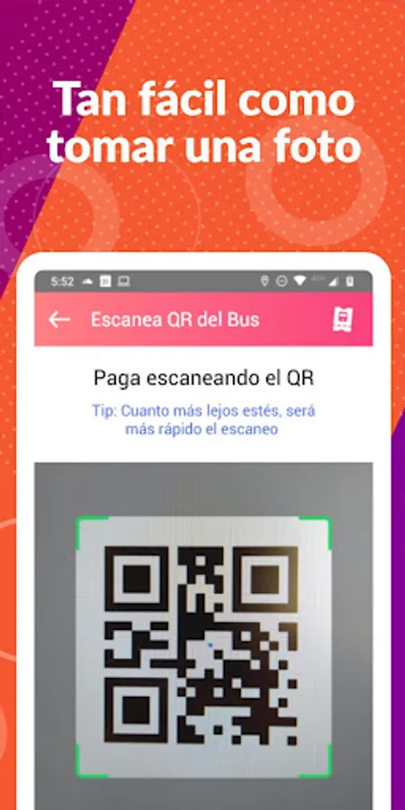 When you get on the bus you will see a QR code that you must scan with your cell phone camera using TuBoleto. Then, when you get off the bus, you will be charged the ticket according to the trip made and the route fare. Pay faster and safer with TuBoleto! 📲🚌