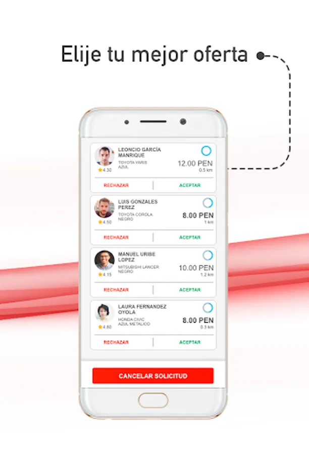UNICAR allows you to choose your favorite driver. Either through its star rating, or by price offered by the driver.