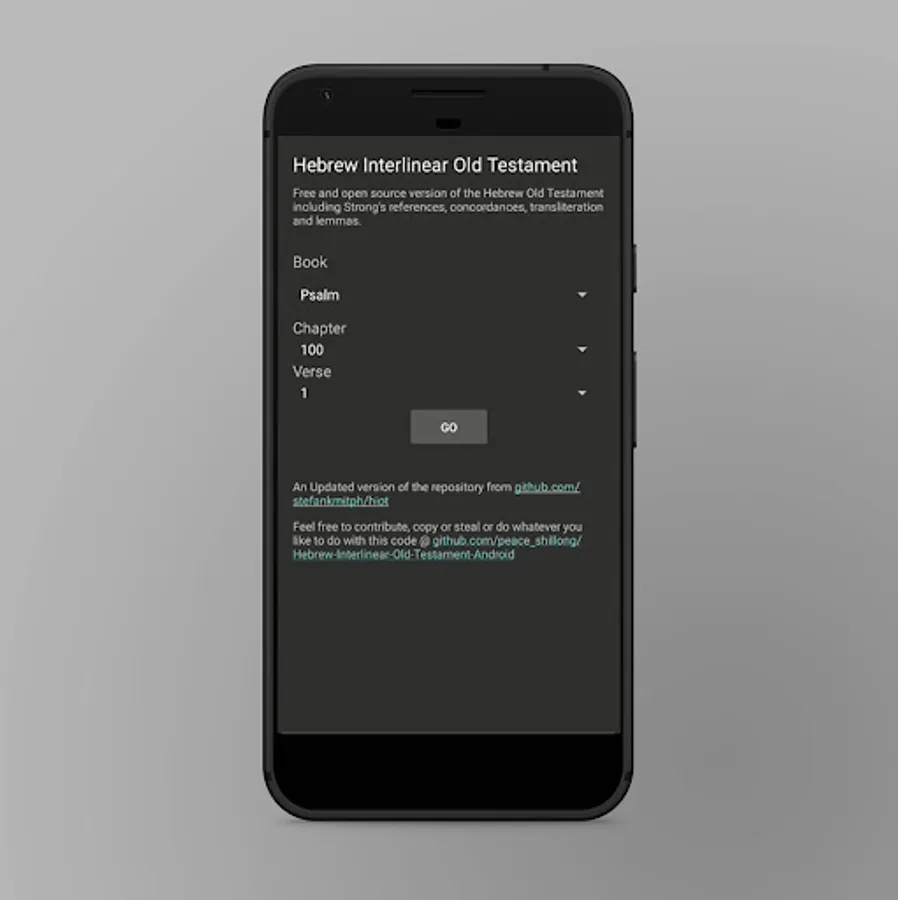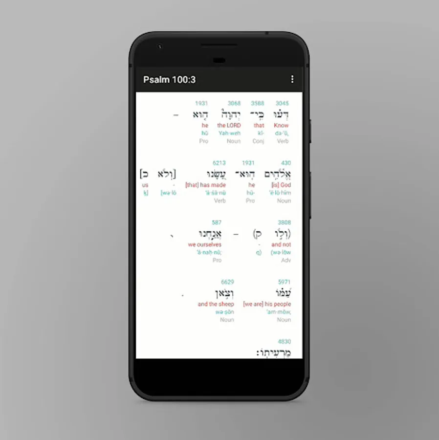 Free and open source version of the Hebrew Old Testament including Strong's references, concordances, transliteration and lemmas.