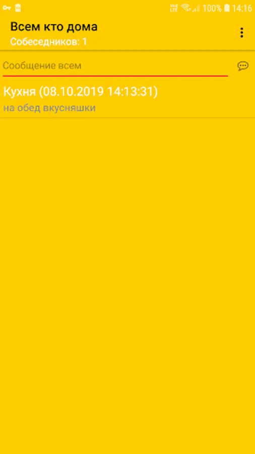 * The application can be activated by voice assistant: tested in Google Assistant with the phrases: “OK, Google” and then “note to Everyone at Home”. After that, the assistant launches an application that automatically starts voice input of the message.
