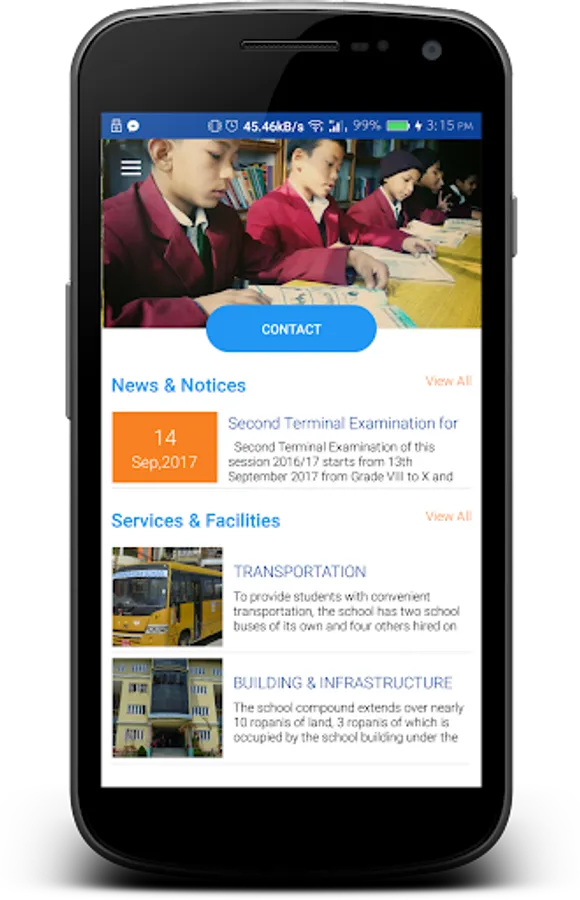 To provide students with convenient transportation, the school has two school buses of its own and four other hired on rent. These buses cover the students coming to school from a wide range of areas in the Kathmandu Valley. The school has further plans to increase the number of the school bus depending on the necessity and demand of the students.