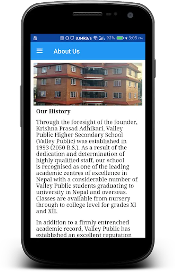 Through the foresight of the founder, Krishna Prasad Adhikari, Valley Public Higher Secondary School (Valley Public) was established in 1993 (2050 B.S.). As a result of the dedication and determination of highly qualified staff, our school is recognised as one of the leading academic centres of excellence in Nepal with a considerable number of Valley Public students graduating to university in Nepal and overseas. Classes are available from nursery through to college level for grades XI and XII.