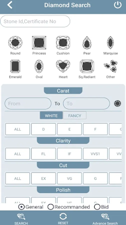 * Specific Search of the diamond you desire.