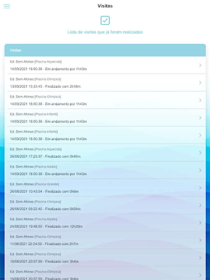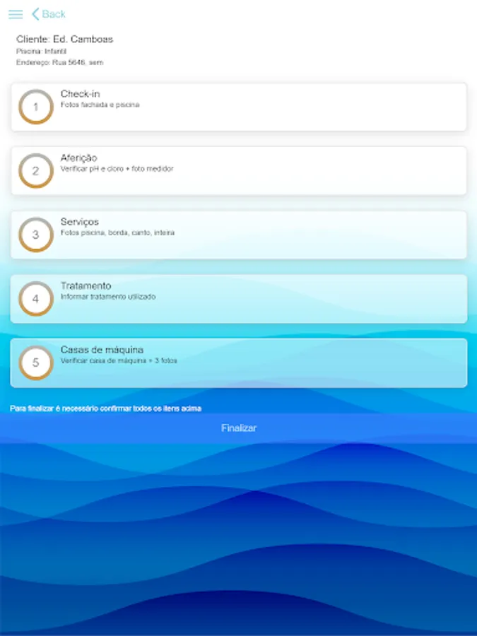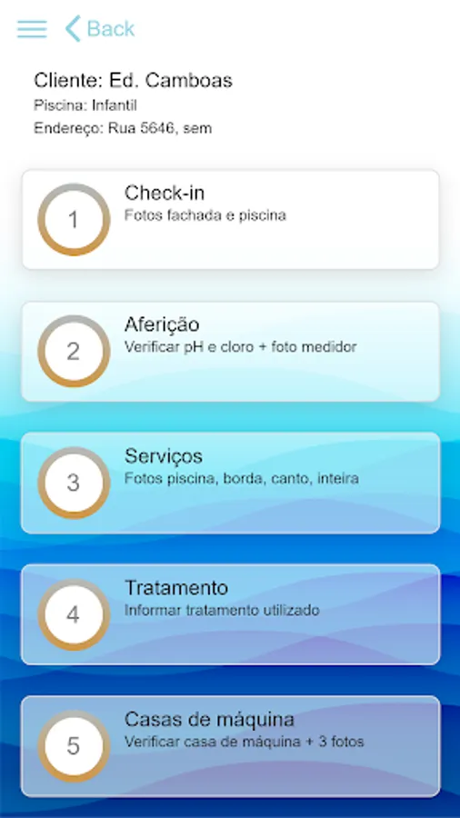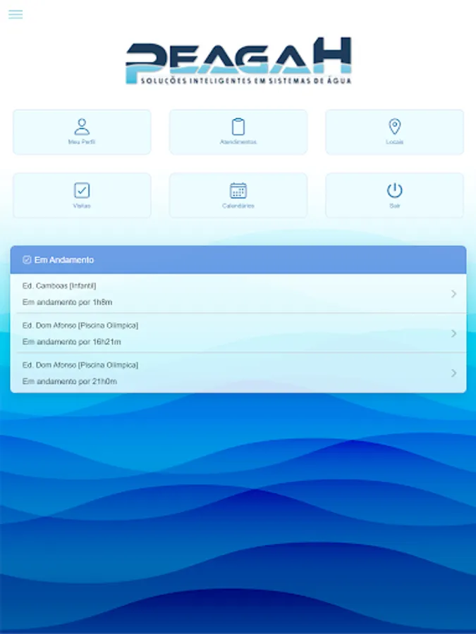 Application for internal use for the Peagah company team to perform customer service with technical visits and surveys for pool treatments.