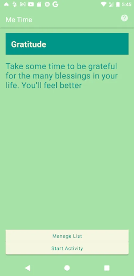 The goal for this app is to eventually contain many activities. These activities will be heavily researched to make sure they are backed by science.