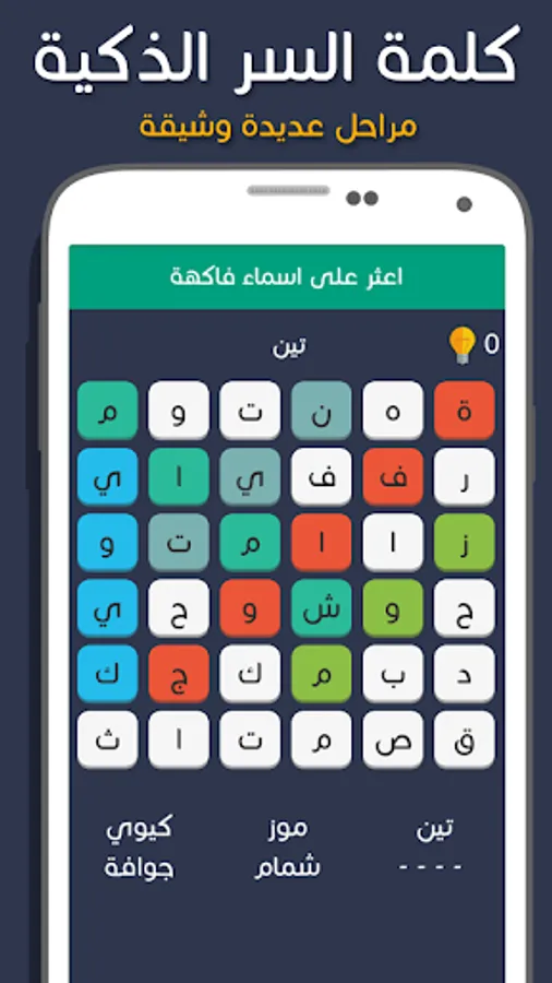 As for the difficult level, you will have to find all the words, guess them and cross them out from the table. We have made the game constantly renewed, so that when you finish a certain stage and return to it, you find it appeared in a new way and in another way that differs from the stage you concluded, and this makes you in a permanent continuation to play away from boredom and repetition. - If you are a fan of intelligence, puzzle games, crossword games, link, million or other, this game will definitely impress you