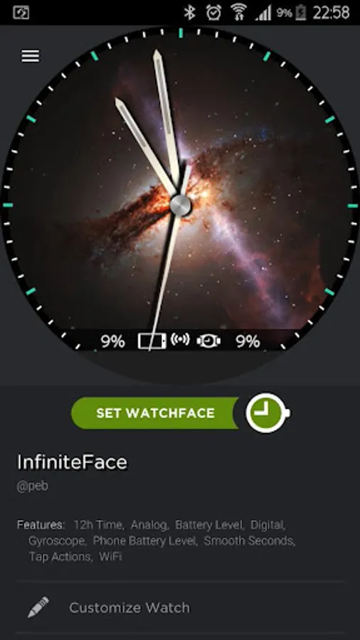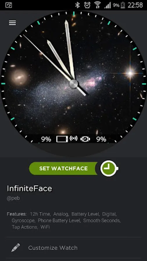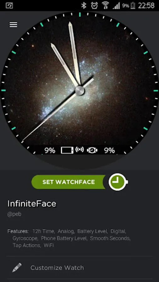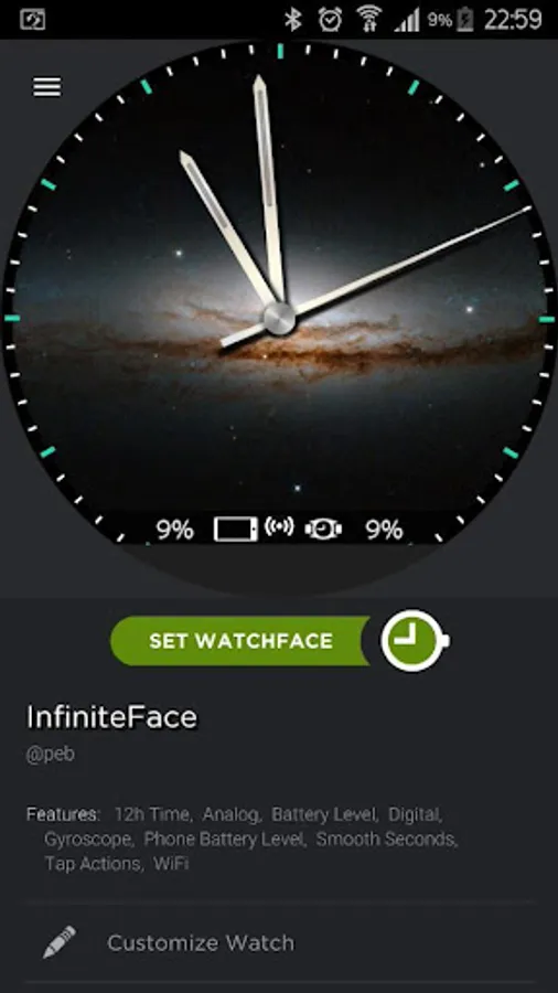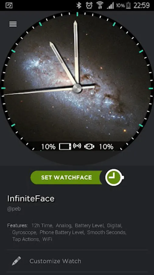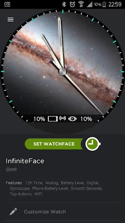 2. Install from Google Play this watchface (Infiniteface Watchface)