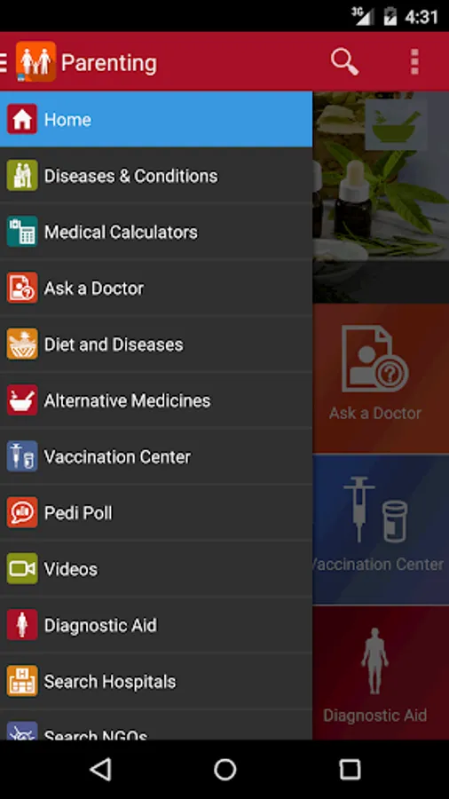 Diseases and Conditions, Medical Calculators, Ask a Doctor, Diet and Diseases, Alternative Medicines, Vaccination Centre, Pedi Poll, Videos, Diagnostic Aid and Search Directory.