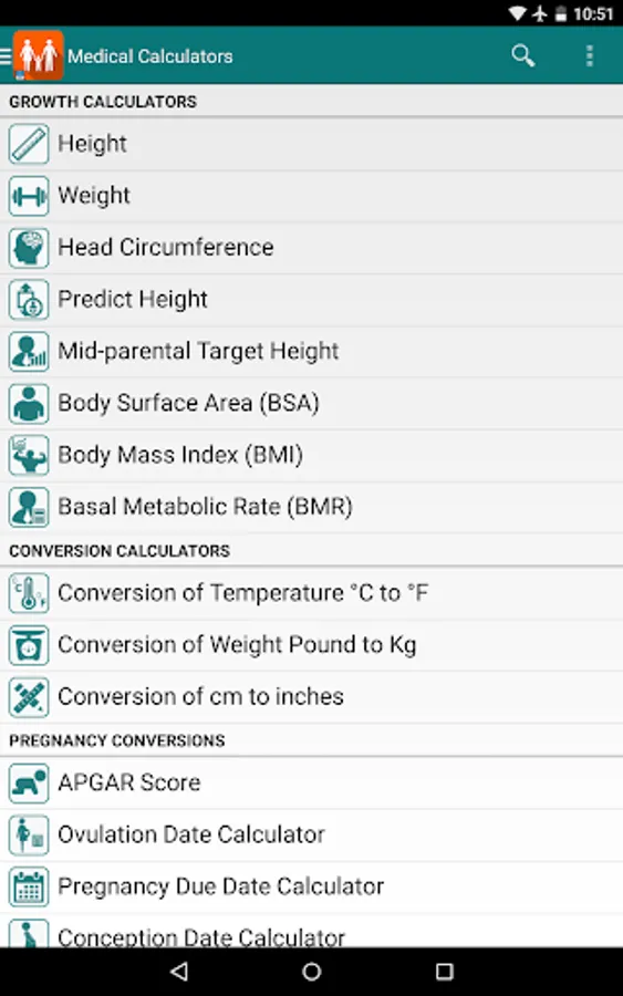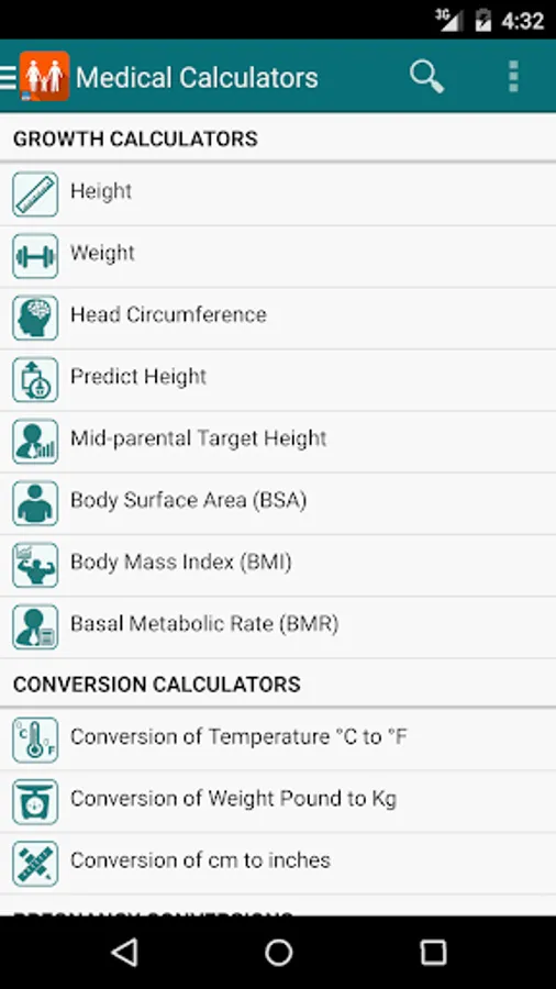 -- Medical Calculators - More than 15 calculators which include the categories, growth, conversion, pregnancy, etc.