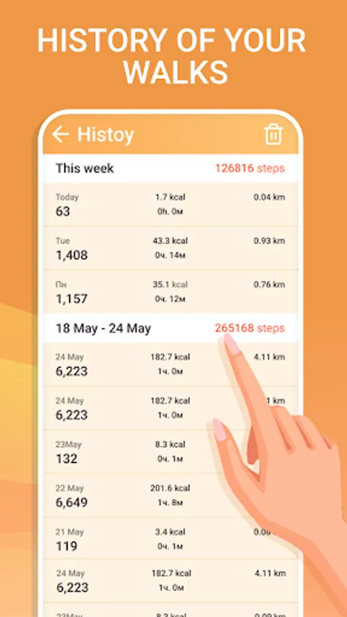 We, too, are tired of apps that are difficult to understand! That's why we made the app as easy to use as possible! It will do all the work for you and will collect all the useful information (about steps, distance, time, calories, weight) into illustrative graphs and clear charts!