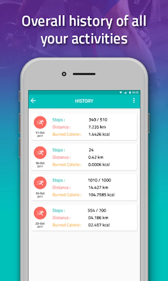 Just tap the start button, and it starts counting your steps. Whether your phone is in your hand, bag, pocket or armband, it can auto-record your steps even your screen is locked.