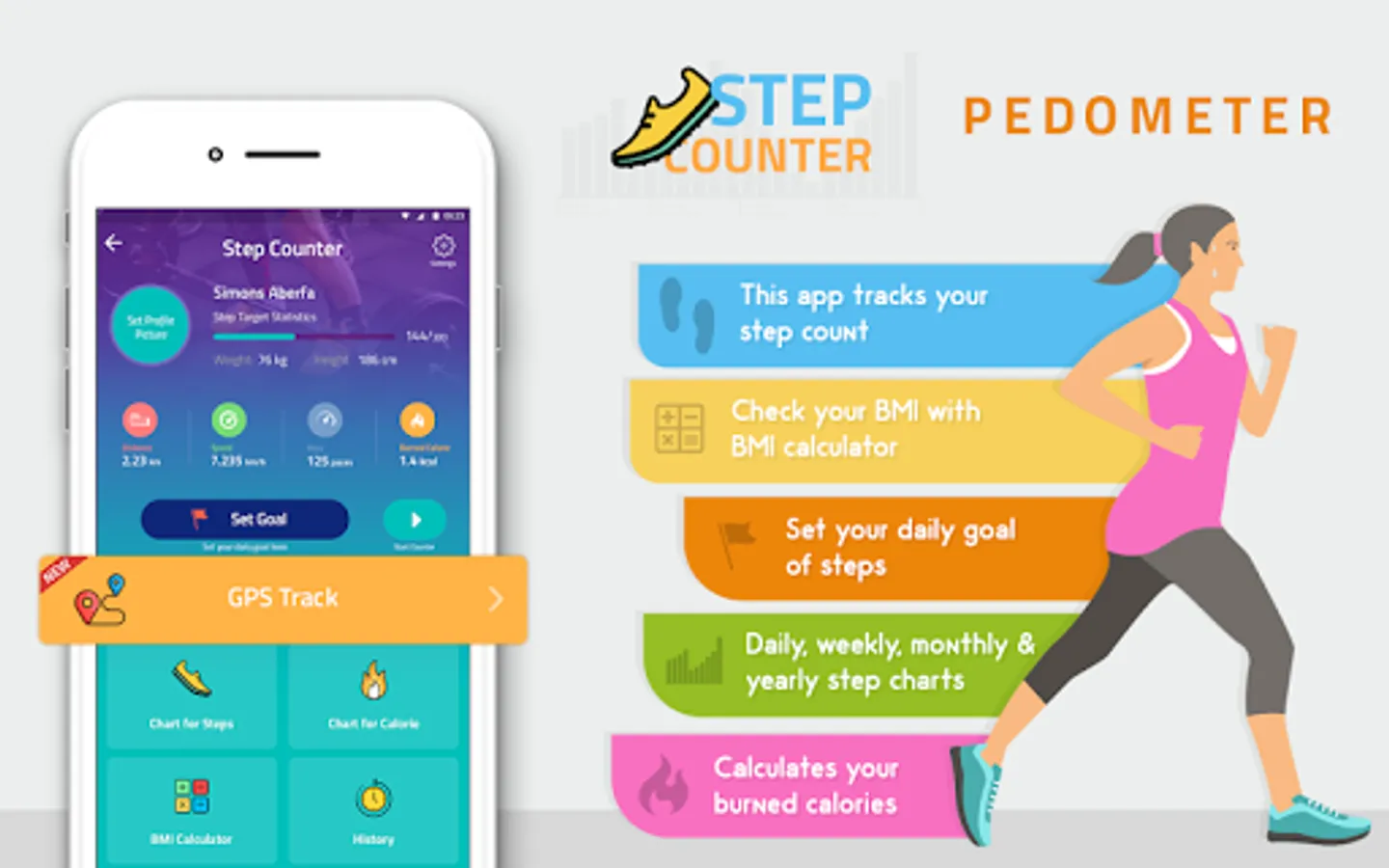 Pedometer & Step Counter with Calorie Counter is one of the best Health & Fitness app to stay fit and Lost Weight. Using built-in sensor this app counts your steps and shows, Daily, Monthly & Yearly statistics to help you achieve your goal. Weight Loss with this Pedometer & Step Counter app will be fun and easy.