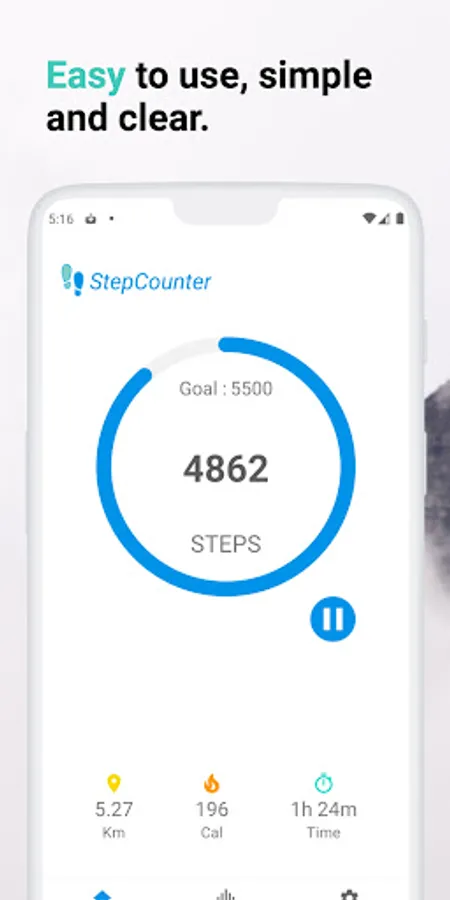Steps tracker free app counting steps, calculate calories burned and show daily, weekly report.