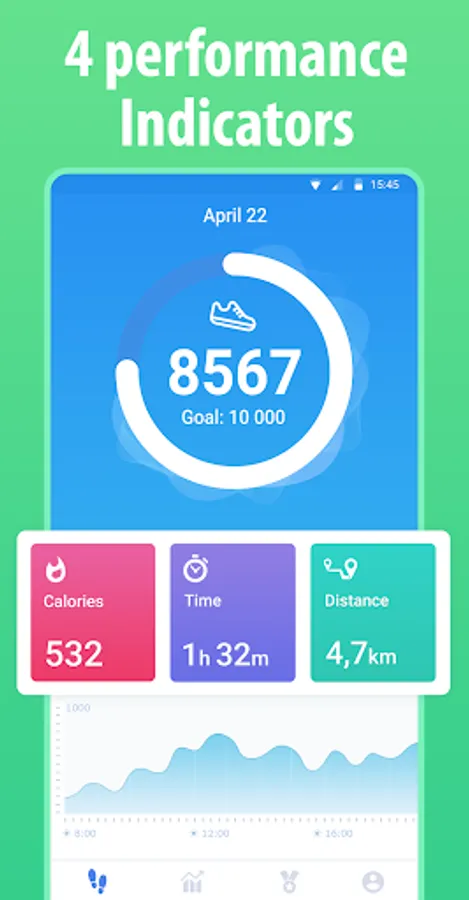 Accurate Pedometer with calorie burner count stats for the selected period.