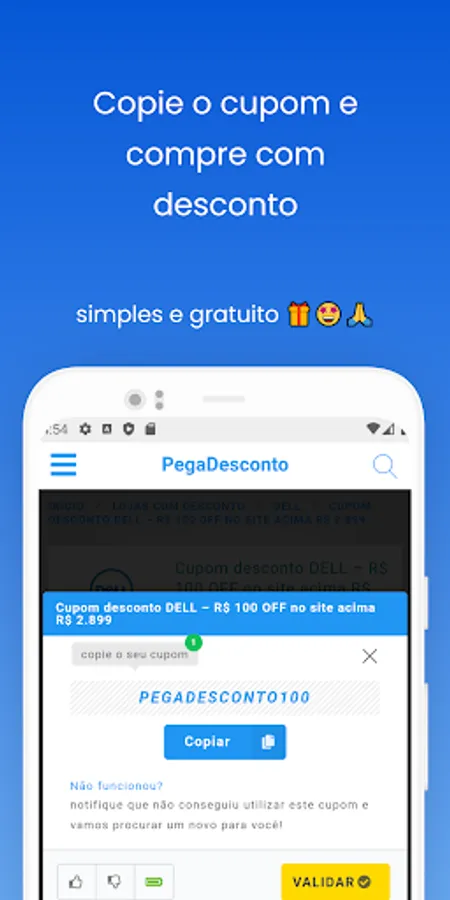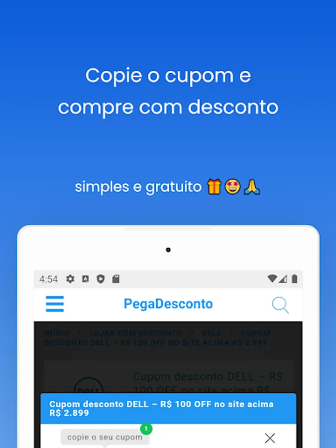 Application to find free coupon codes to reduce the value of internet purchases provided by the PegaDesconto website. Here, you will have on your smartphone or tablet an application that gives quick access to the site www.pegadesconto.com.br and has other features to make your life easier and help you save a lot on your online shopping.