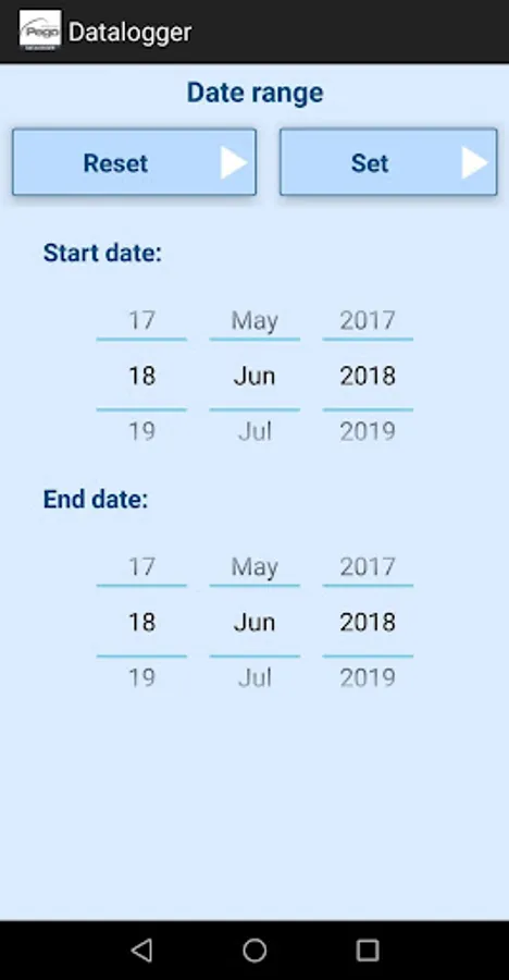 - selection of the date range to download