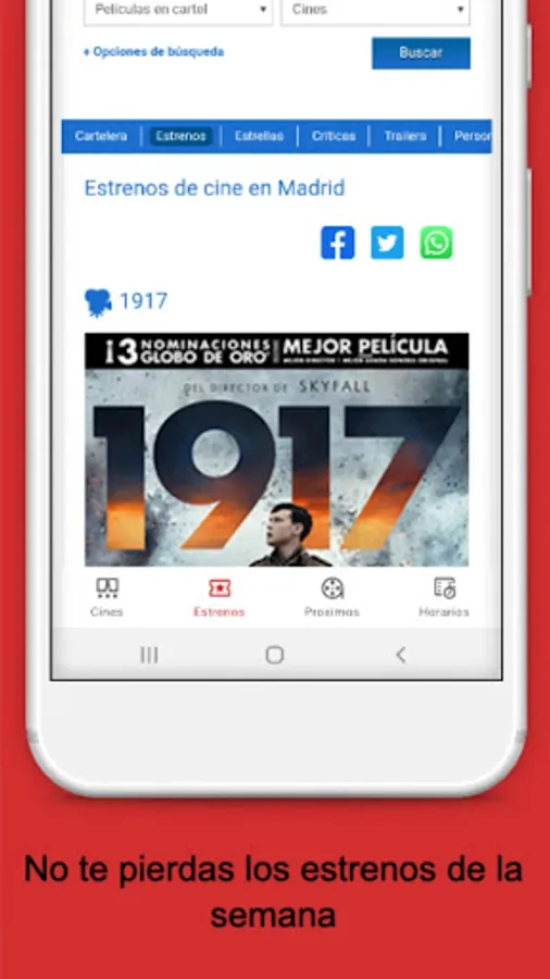 Find access to all Spanish cinemas easily, without having to navigate through each of them.