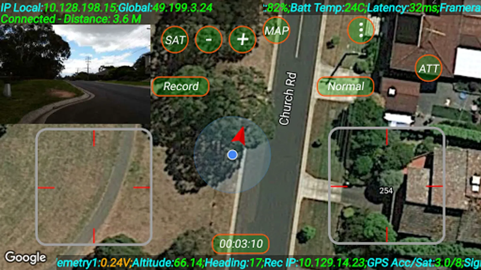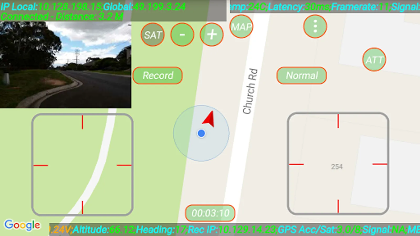 Location and orientation can be displayed on Normal or Satellite Maps