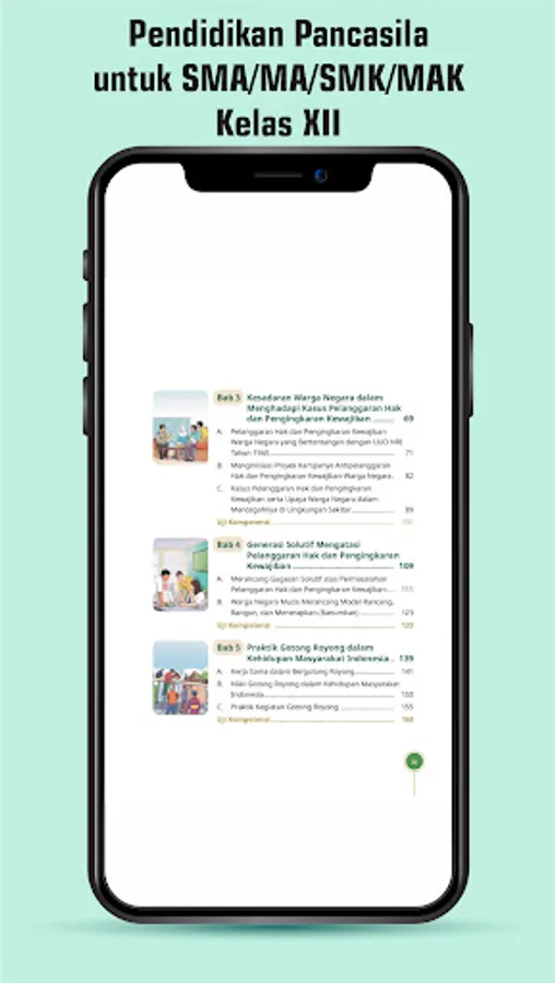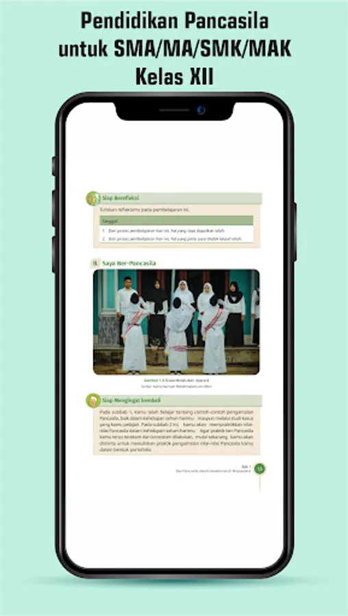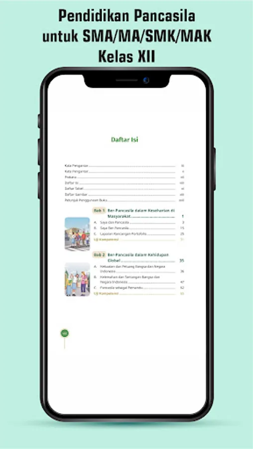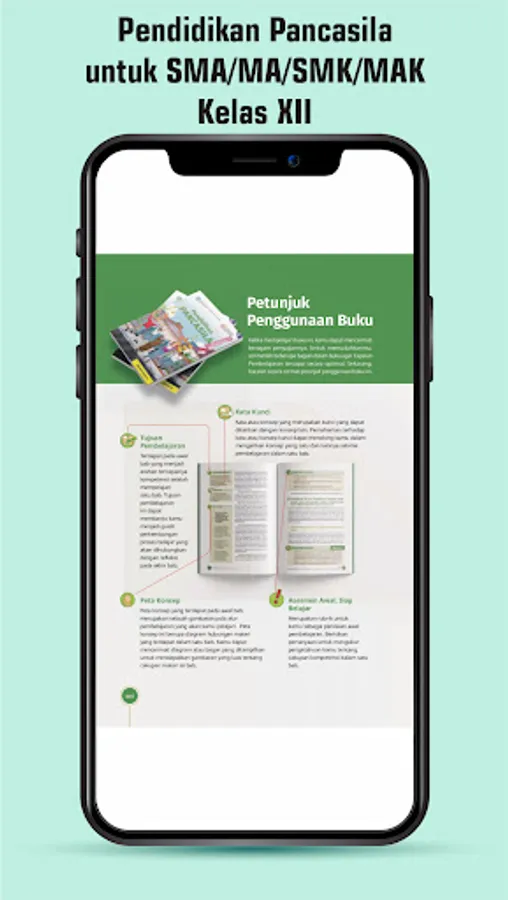 Buku Pendidikan Pancasila Kelas XII ini mengajak kamu untuk memaknai Pancasila sebagai kata benda, kata kerja, dan kata sifat sekaligus. Sebagai kata benda, Pancasila telah ditetapkan sebagai ideologi, pandangan hidup, dan dasar negara di mana setiap warga negara berkewajiban untuk meyakini dan mematuhinya. Sebagai kata kerja, Pancasila dipraktikkan dalam keseharian setiap warga negara. Istilah “ber-Pancasila” dalam buku ini sebagai kata sifat, mewujudkan Pancasila menjadi karakter, sifat, dan watak bangsa Indonesia.
