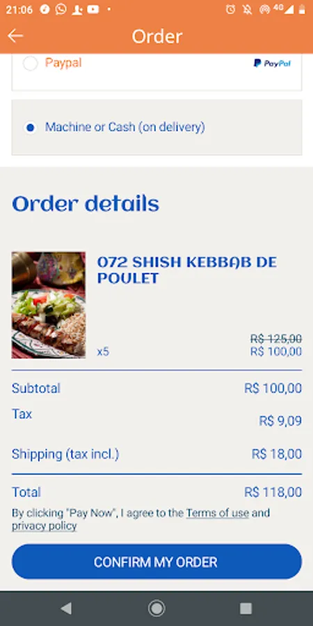 You also have the opportunity to pick up your order at Restaurante Arab.
