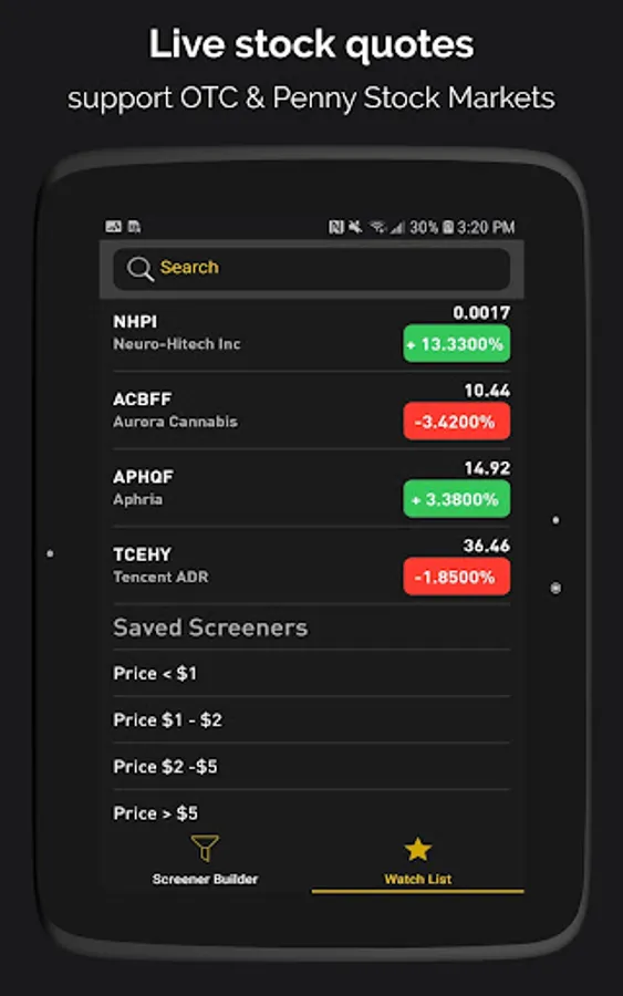 Disclaimer: Penny Stocks Screener is only a useful tool to find & track penny stocks. This app is not responsible for profits, revenues, or data and financial losses.