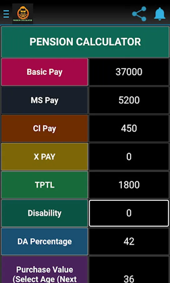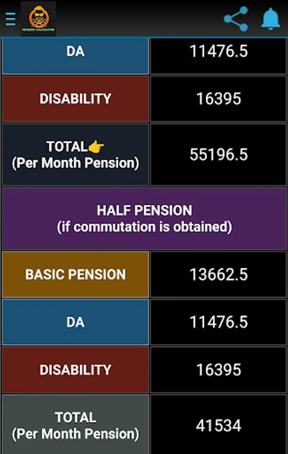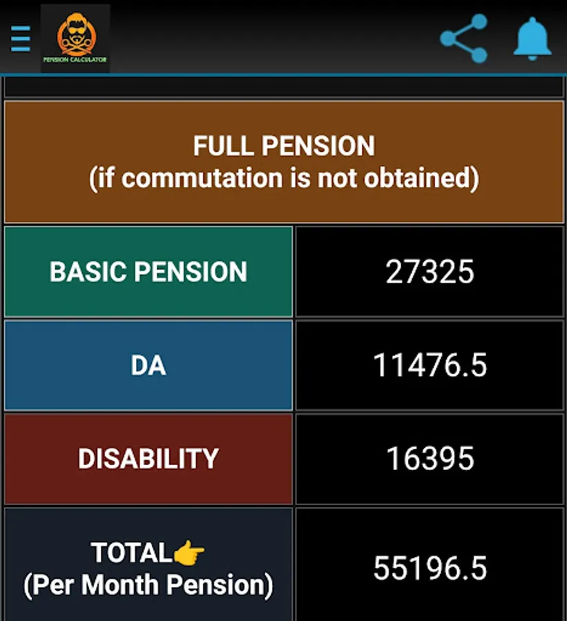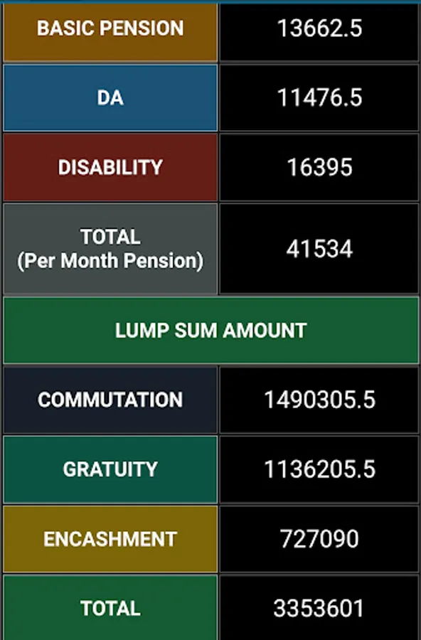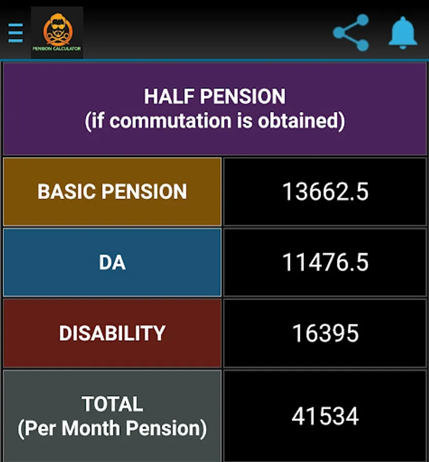 In this application contain pension calculator. Easily calculate your full pension, half pension, disability pension, Dearness allowance, Lump Sum Amount of Commutation, Gratuity, Encashment.