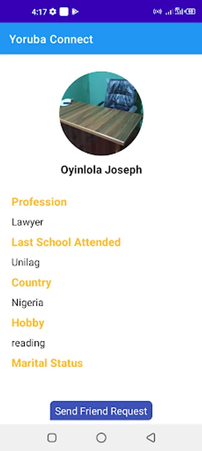 Create great connection with Yoruba people around the world with Yoruba Connect. Using of this app will enable you to connect with professionals like Lawyer, Accountant, Engineers, Doctors, students and others not mentioned here.