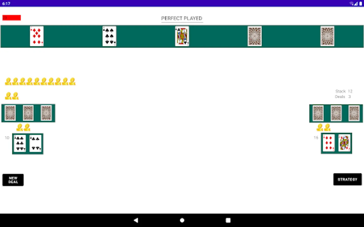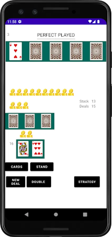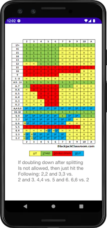 You can practice playing blackjack as advantageously as possible by memorizing the strategy table. If you do not do the right thing in split, stand, hold or double, the app will notify you. You can then go in and read in the table how you should have done.