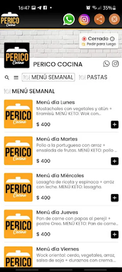 Perico Cocina is a restaurant located in San Andrés de Giles. (BA) You can find a wide variety of dishes. Menu of the day and Viandas Keto.