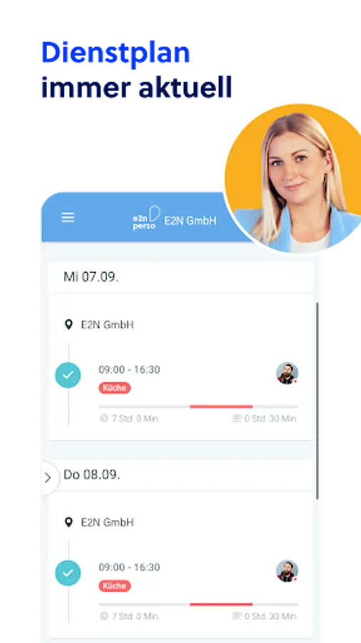 • Always call up your roster – and it's up-to-date from anywhere! If something changes, you will be informed directly via push message or email. For flexible planning, you can also indicate your availability or apply for shifts.