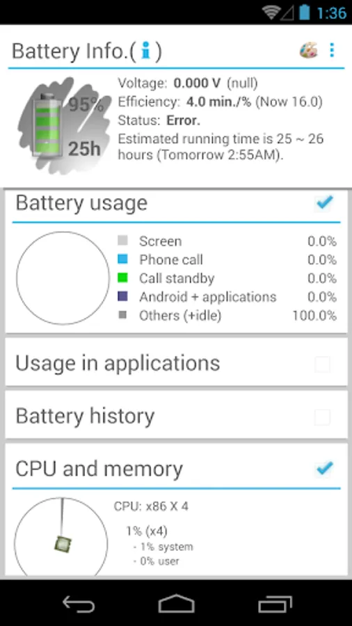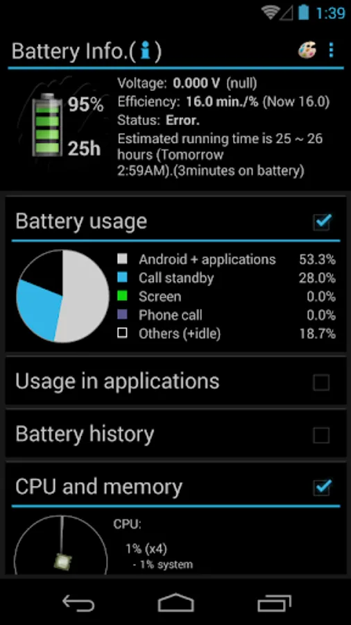 Display battery information and estimation time. Also, notify when battery is consumed too fast.