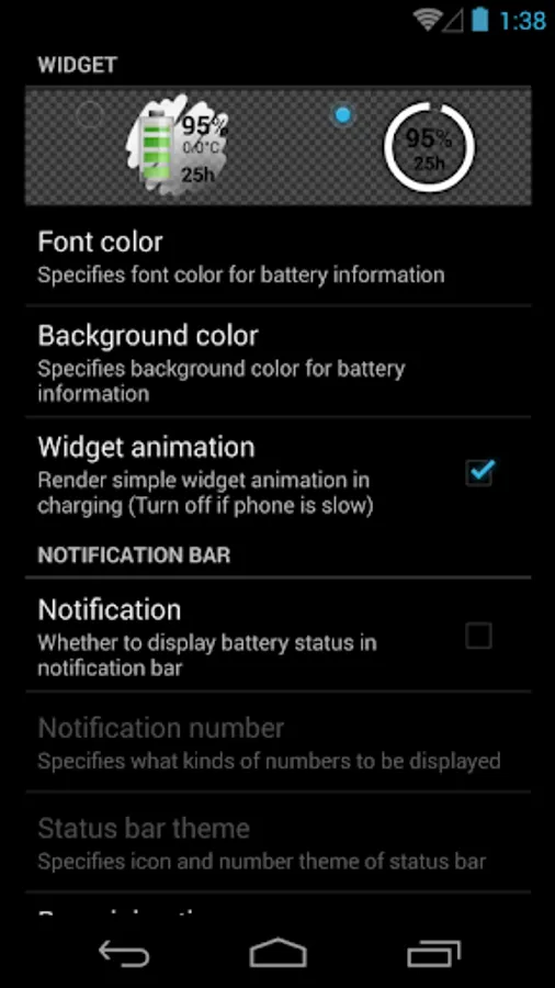 Show battery status (Level, Temperature(Cellcius, Farenheit), Voltage...)