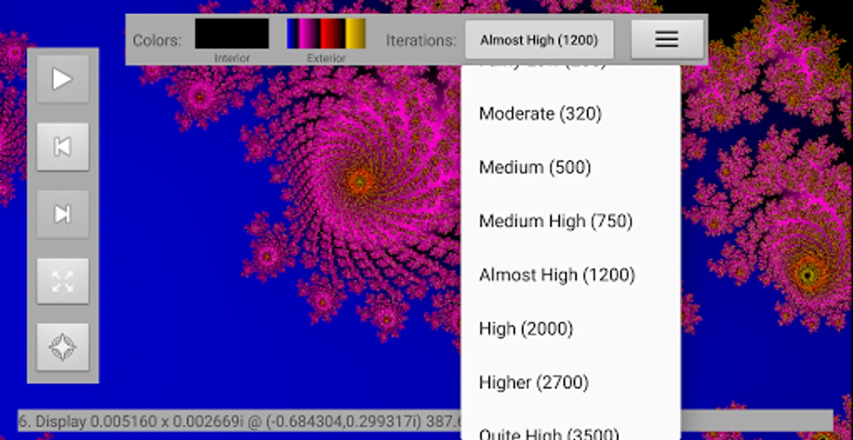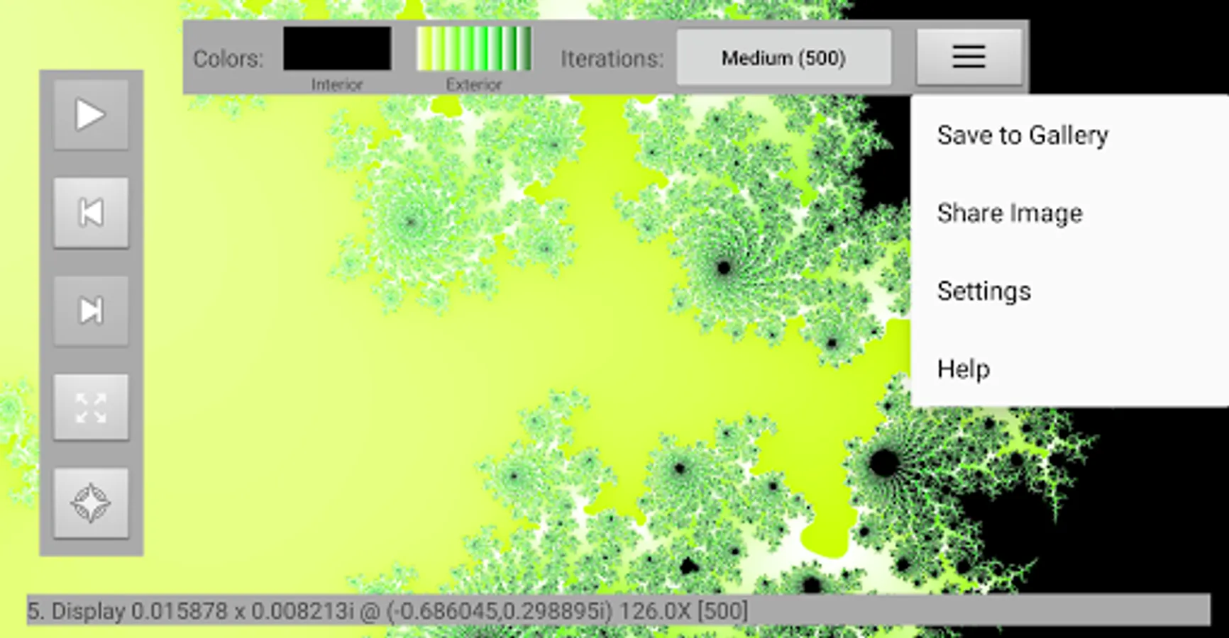 There are many applications on the Internet for exploring the Mandelbrot set. This one is designed to be fast, easy to use, and moderately configurable. Some of its features include: