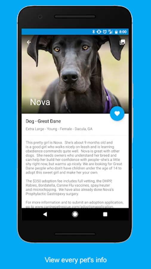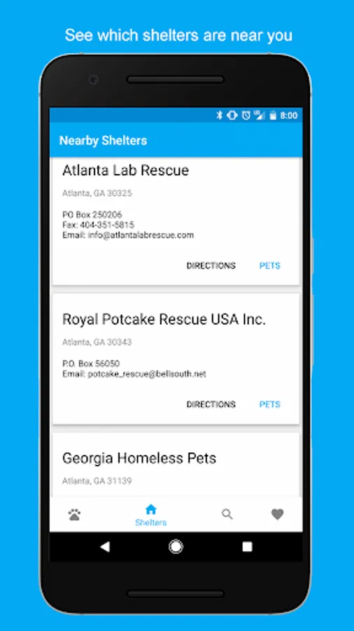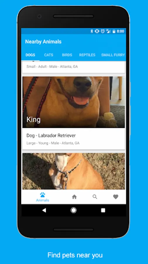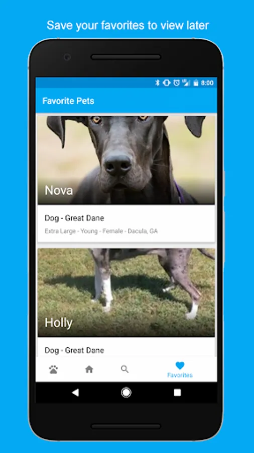 Adoptable makes it easy to find and adopt your new best friend! View animals and shelters near you, or search for your ideal pet, and mark your favorites to view later. Then, when you're ready, contact the shelter right through the app. All data is sourced from the public Petfinder API, and should have pets and shelters from a variety of places.