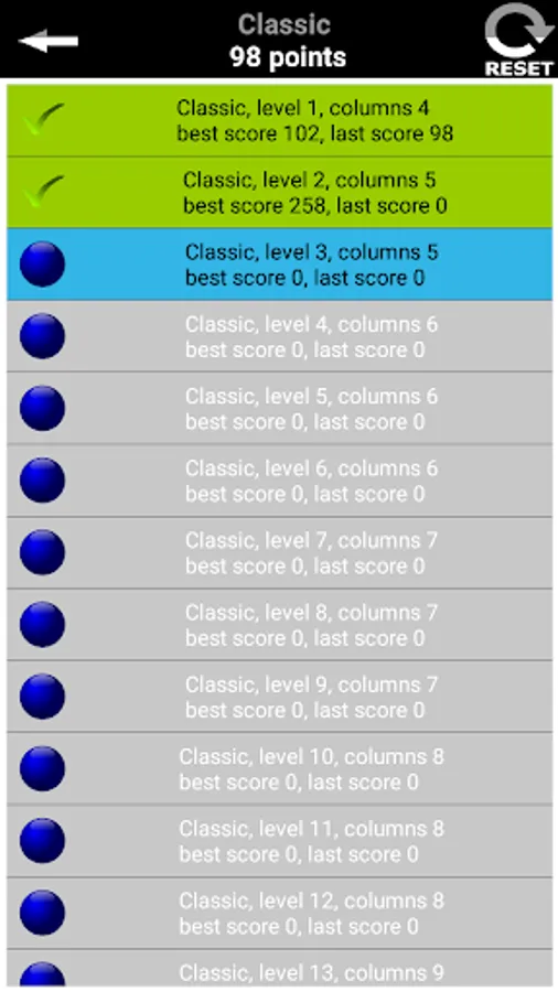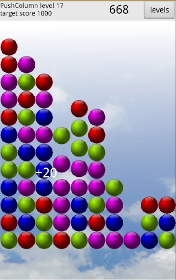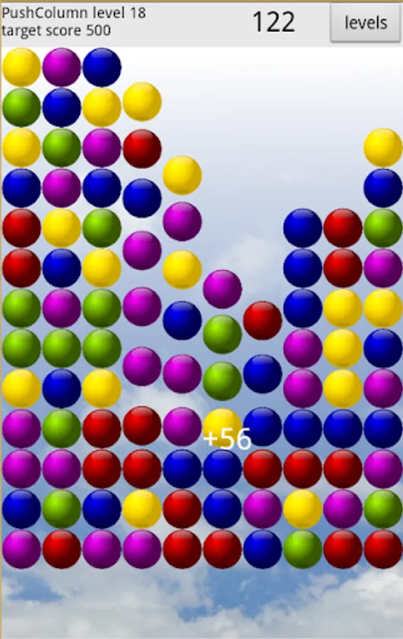 The push column mode is endless : new columns appear! You have to score a certain amount of points in order to win. Pick the larger groups !