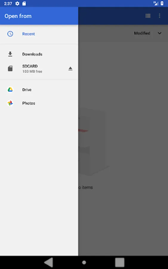 The program is controlled using the menu. To call up the menu, hold your finger on the screen or press the Menu button on the device.