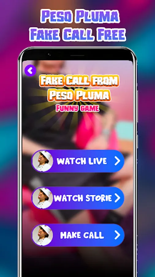 Our interactive Peso Pluma chat and call feature is aimed at offering engaging, magical moments. You can also use the Peso Pluma video call and chat to create pretend conversations and role-plays. The Peso Pluma fake video call offline feature is great for situations when you want to appear busy, or just for a fun prank!