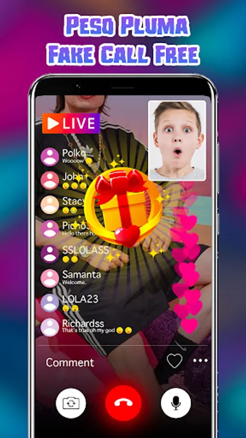 Do you love Peso Pluma's fantastic humor? You can now emulate that hilarity with Peso Pluma prank fake video voice calls. This app will make you feel like you're right in a Peso Pluma chat room, enjoying his quips and jokes. Be captivated by the Peso Pluma prank simul feature, or revel in the Peso Pluma real chat room experience!