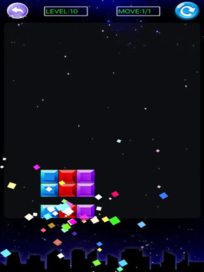 No distinction is made between colors, as long as each row or column is filled with square holes, it will be automatically eliminated and points will be obtained. The more grids eliminated each time, the higher the score.