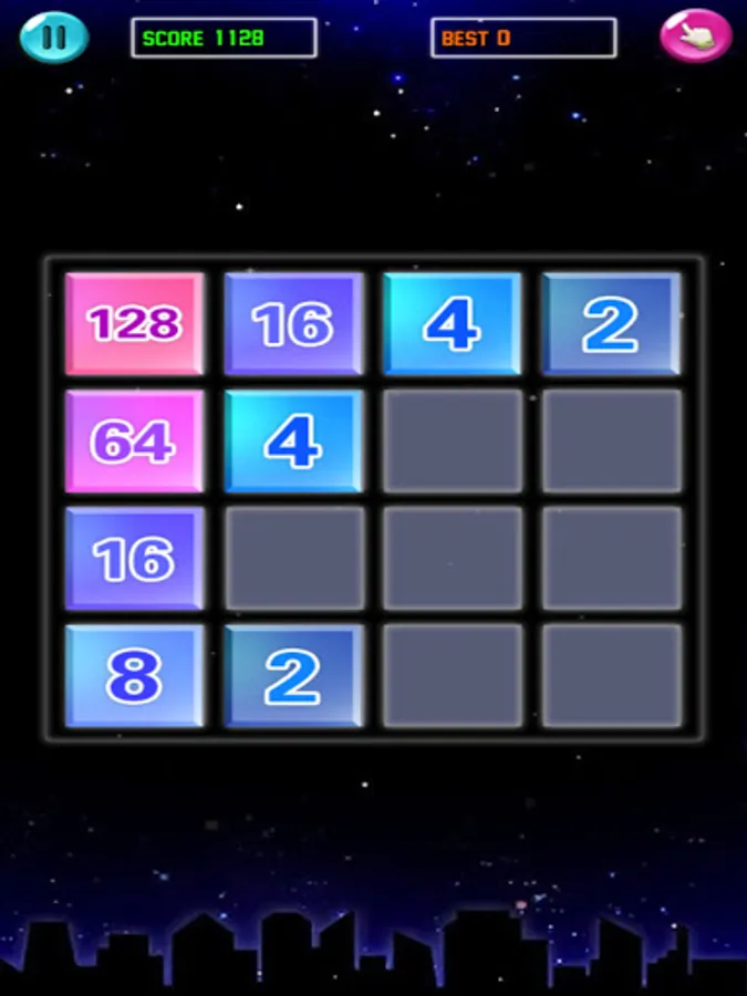 Swipe the screen up, down, left, and right, and the digital squares will move and gather in the direction you slide. When the square holes with the same number collide, they will merge into one square, and the value is the sum of the two of them.