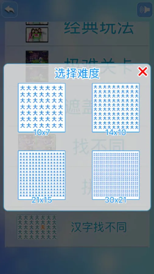 Provide a variety of different ways to find differences: classic, extremely difficult, four choices, memory, puzzle, Chinese characters to find different, and continue to increase new gameplay.
